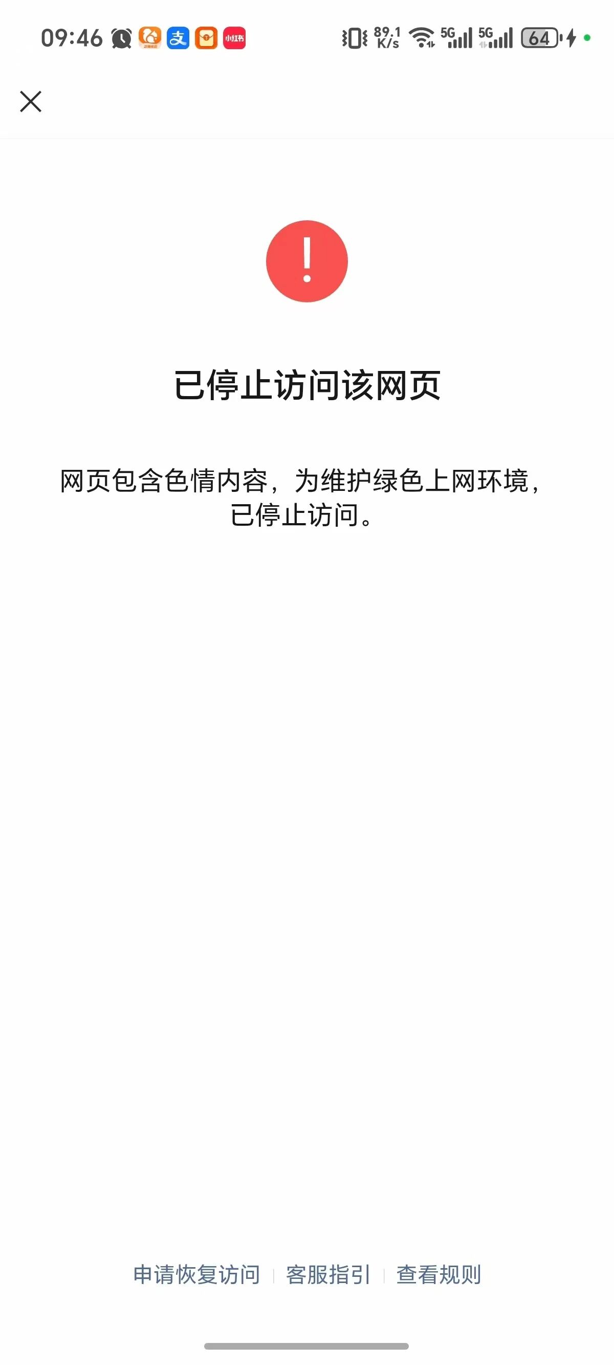 微信扫描配置的普通二维码后,因为被提示“网页包含色情内容,为维护绿色上网环境,已停止访问”,所以没有进入对应的小程序,已经在提示页面的申请恢复访问中提交申诉,但并没有实际解决。