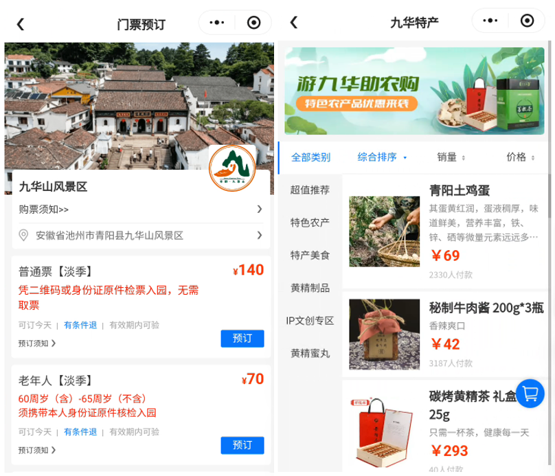 提供实物商品和服务商品在线销售及配送的小程序,如提供旅游商品的小程序,同时提供土特产商品和门票商品的在线销售。