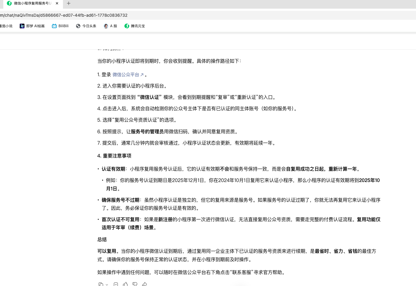 小程序认证到期后,能复用已经认证的微信公众号的资质吗
