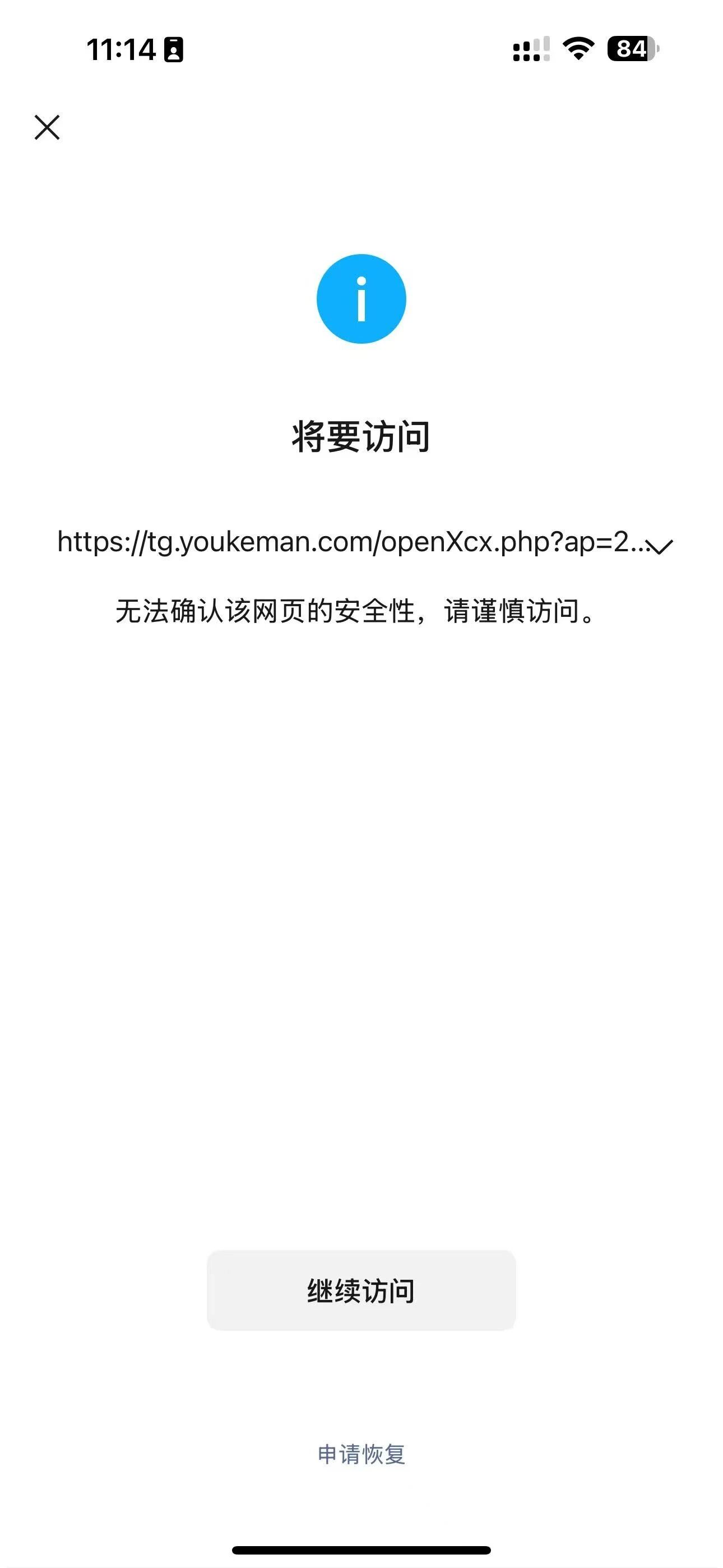 扫普通二维码打开小程序,扫码后提示无法确认网页安全性