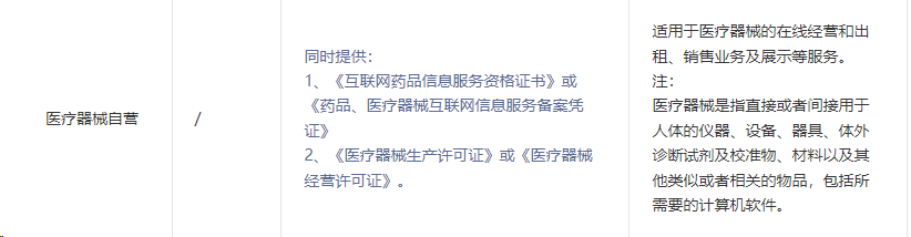 2、【医疗服务-医疗器械自营】类目中要求的《药品、医疗器械互联网信息服务备案凭证》与《医疗器械网络销售备案》是两个不同的资质,对应资质的办理要求建议可自行咨询当地对应的主管部门。