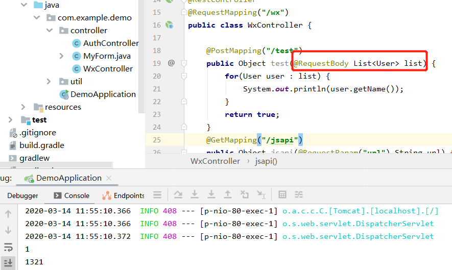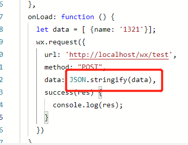 header: { 'Content-type': 'application/json' } wx.request添加上面的header,参数一项直接填你的对象数组就OK了java的话用List<Object>接收吧,Object根据定义的对象来就可以了wx.request({method: 'POST',url: 'http:xxxx.xxx',data: [{a: '1',b: '2'},{a: '1',b: '2'}],header: {'Content-type': 'application/json'},success(res) {//},fail(err) {//}});直接在wx.request的data里写上就行了吧?