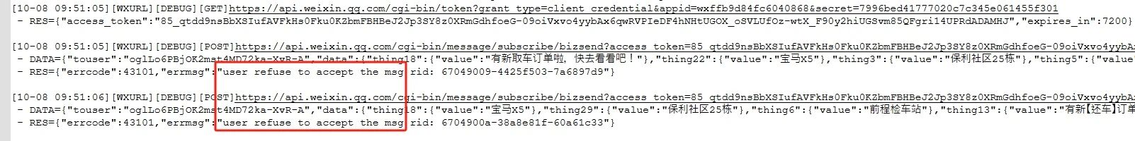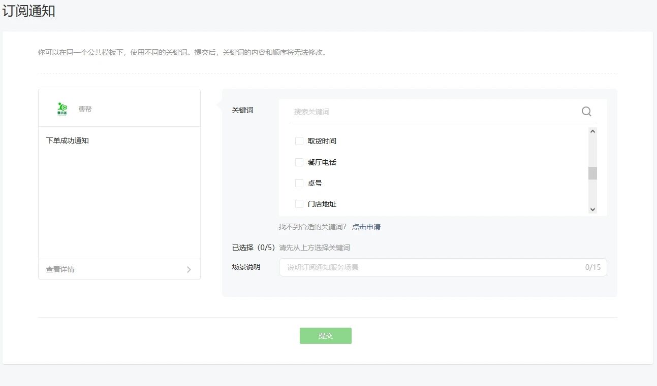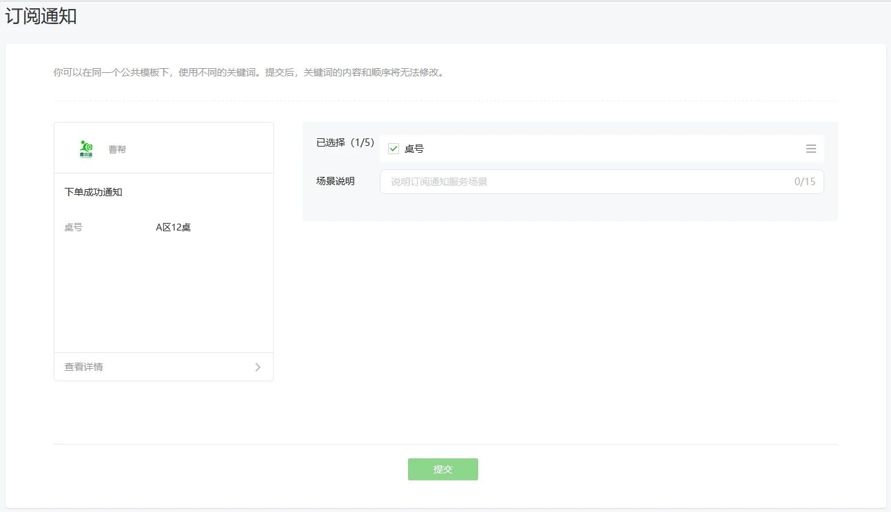 2.订阅消息,存在相同标题的消息模板,比如《新订单通知》,在弹出订阅弹窗的时候只显示一条,勾选了总是记住选项,实际发送消息只有第一次发送成功,之后再发送都是报错的;再次订阅消息,订阅列表没有消息模板了