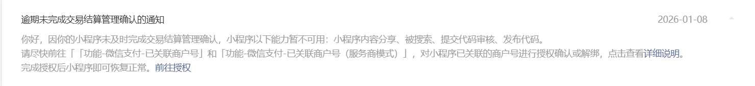 小程序已关联商户号,之前支付超管已经操作过确认授权,现在怎么又要操作一遍?不操作还封禁小程序分享能力