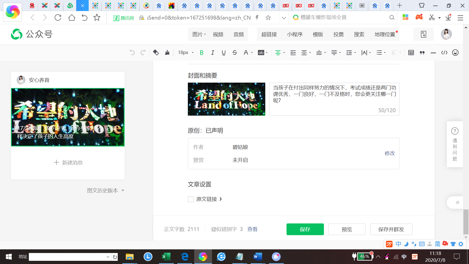 我是个人公众号,公众号名为:安心养育,我有后台编辑文章时,选择了声明原创,编辑时,也有显示原创的标志,但是我把文章保存和群发后。用手机进入公众号后,再去查看文章时,为什么没有显示原创标志呢?在原创管理里面也没有原创文章显示呢?