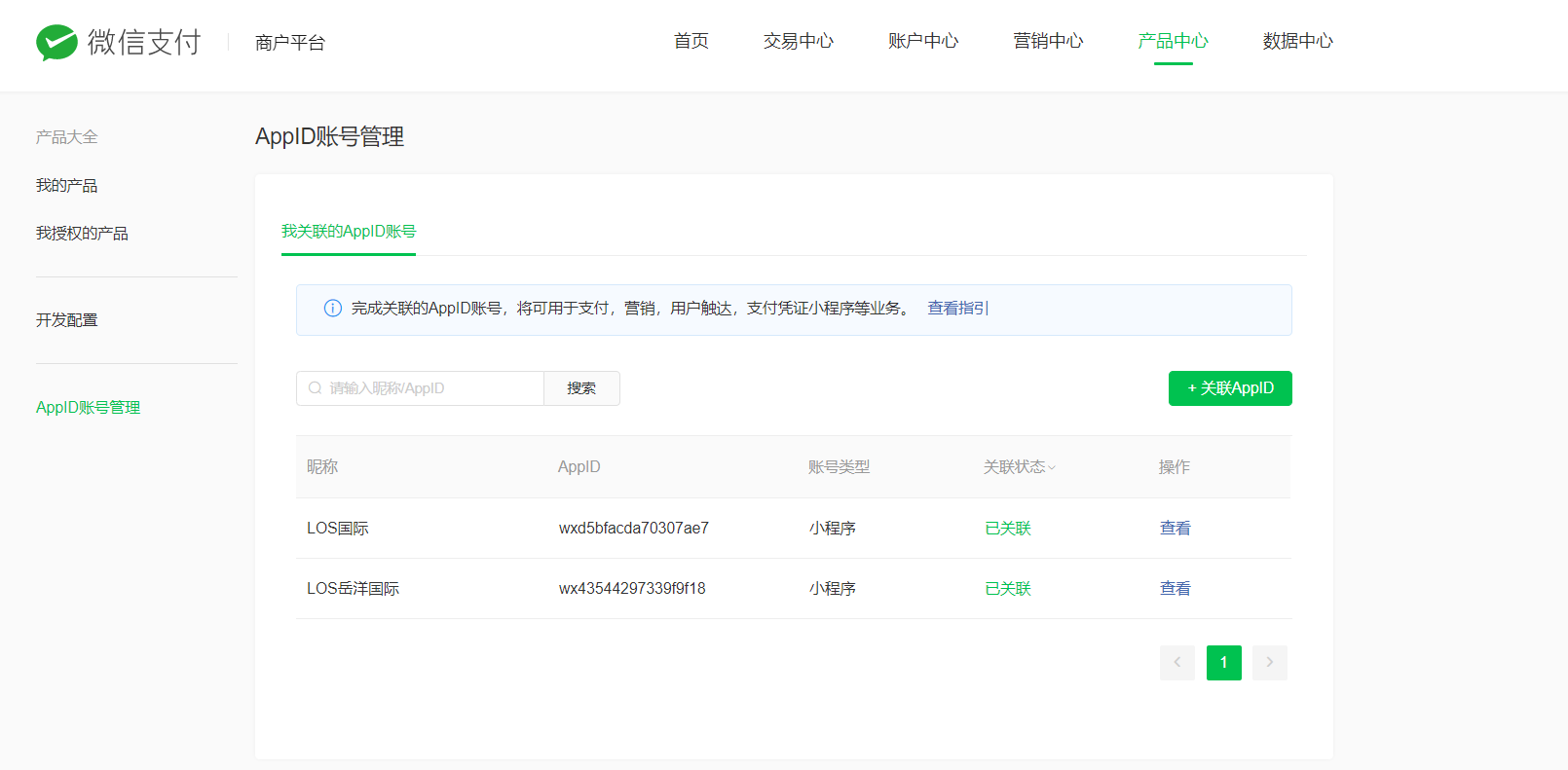 您好,我是程序开发人员,开发了一个可以正常支付的小程序。现在,我把小程序所有代码转移到另一个AppID下面,两个AppId都已经绑定在一个商户号下了,但是,新的小程序无法成功支付,报错是sub_mch_id与sub_appid不匹配",
