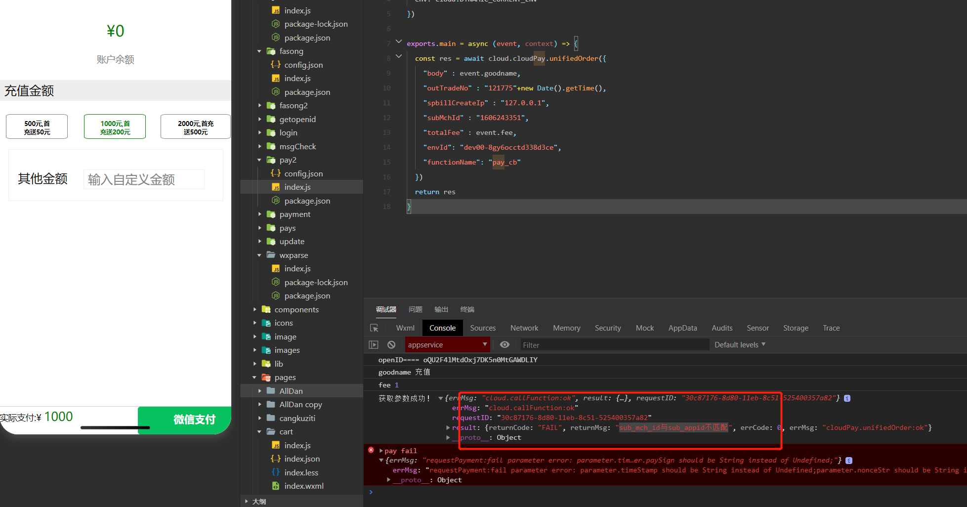 第一个程序能够正常支付,第二个程序不行,不知道为什么?谢谢!