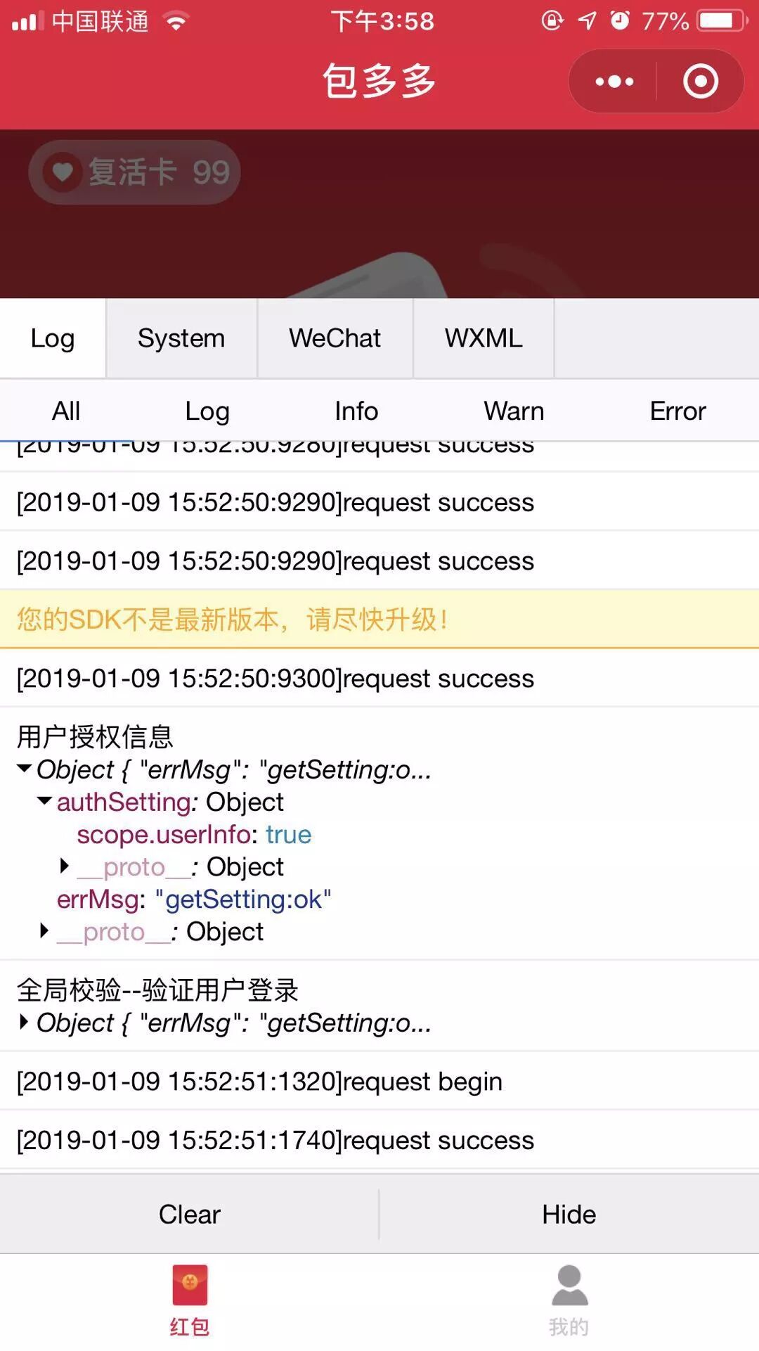 手机:苹果在xs max,状况描述: 用户授权后,调用wx.getSetting没有返回用户的授权信息