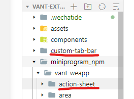 Error: Component is not found in path "vant-weapp/action-sheet/index" (using by "custom-tab-bar/index")