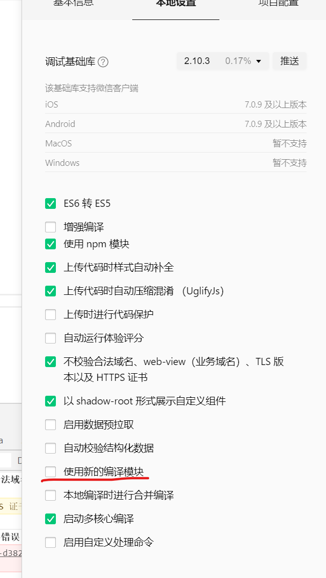 你好,试试取消勾选“使用新的编译模块”,然后清除缓存再重新编译看看能不能解决