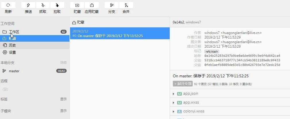 答辩工具呜呜呜、贮藏了点击应用贮藏会报错,直接在终端用git stash apply 就把贮藏的搞回来了,报错就清缓存重新打开项目