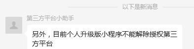 目前个人升级版小程序不能解除授权第三方平台