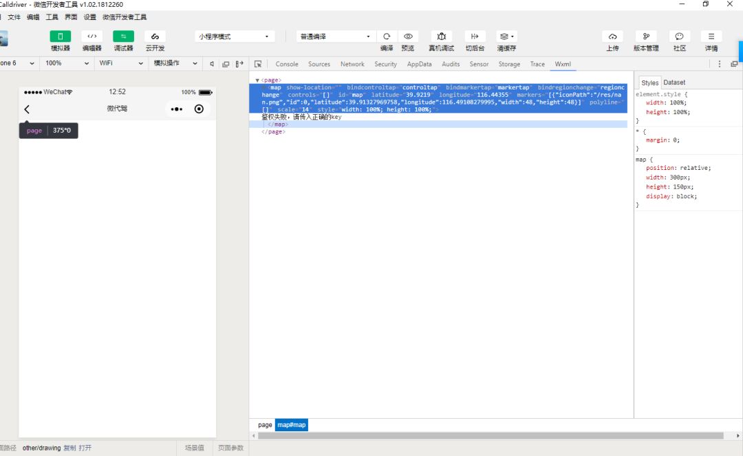 小程序map组件高度设置100%时提示 ‘鉴权失败,请传入正确的key’