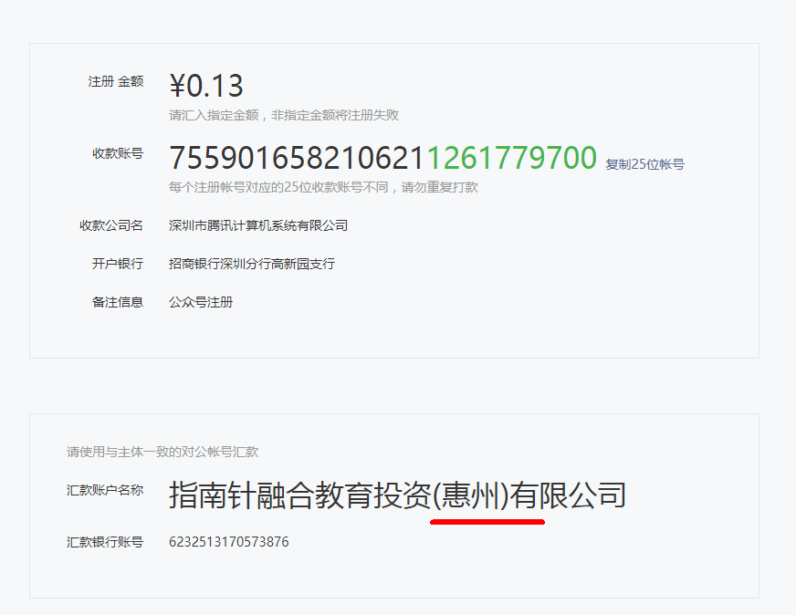 自动将企业号的名称转为小括号,导致转账认证反复失败。这是企业服务号注册机制的一大BUG!还不改好!中国叫企业怎么认证,后面就建议我们花300元的认证了,都没有转账认证的方式提供了!没想到腾讯公众号的认证也向钱看~~