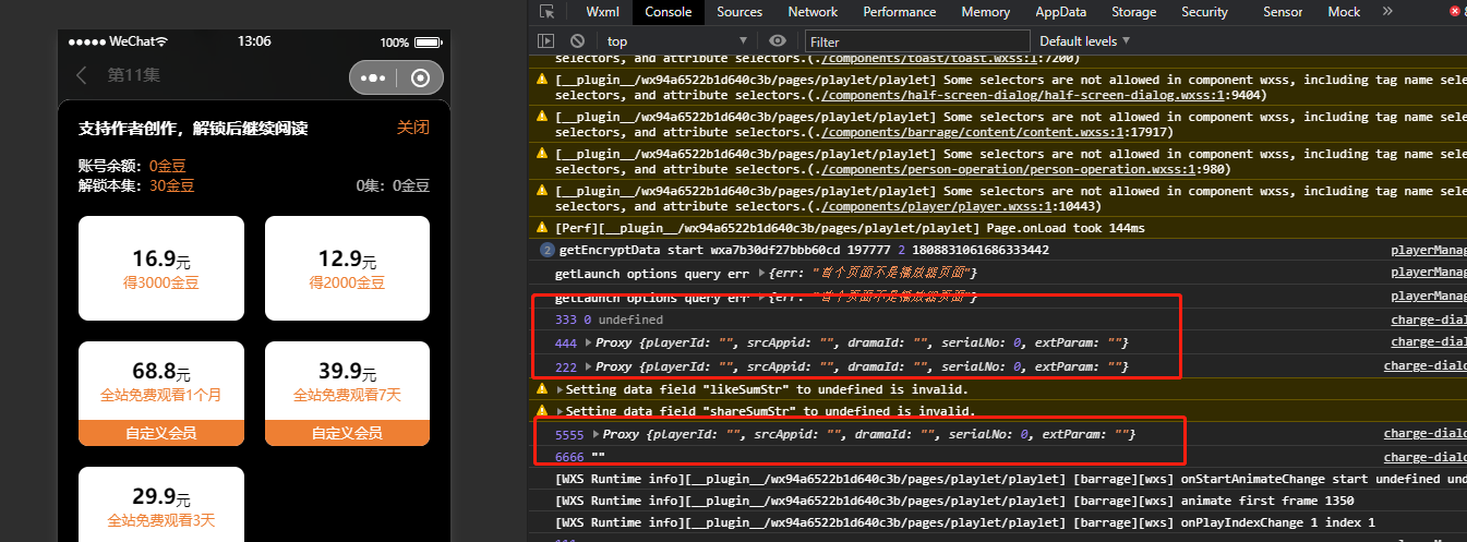 开发环境:框架:uniapp,vue版本:3.X,typescript,已经成功集成微信小程序的短视频播放插件,但是自定义充值组件无法注入参数,不知道是不是因为插件支持的vue版本问题,还是其他问题,请各位帮忙分析下,以下是部分代码截图: