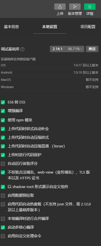 电脑的nodejs版本是12.19.0,npm是6.14.8,小程序使用了linui,但是现在无法正常真机运行调适,只能模拟器调适。报了图中的错,请问有什么好的解决办法呢