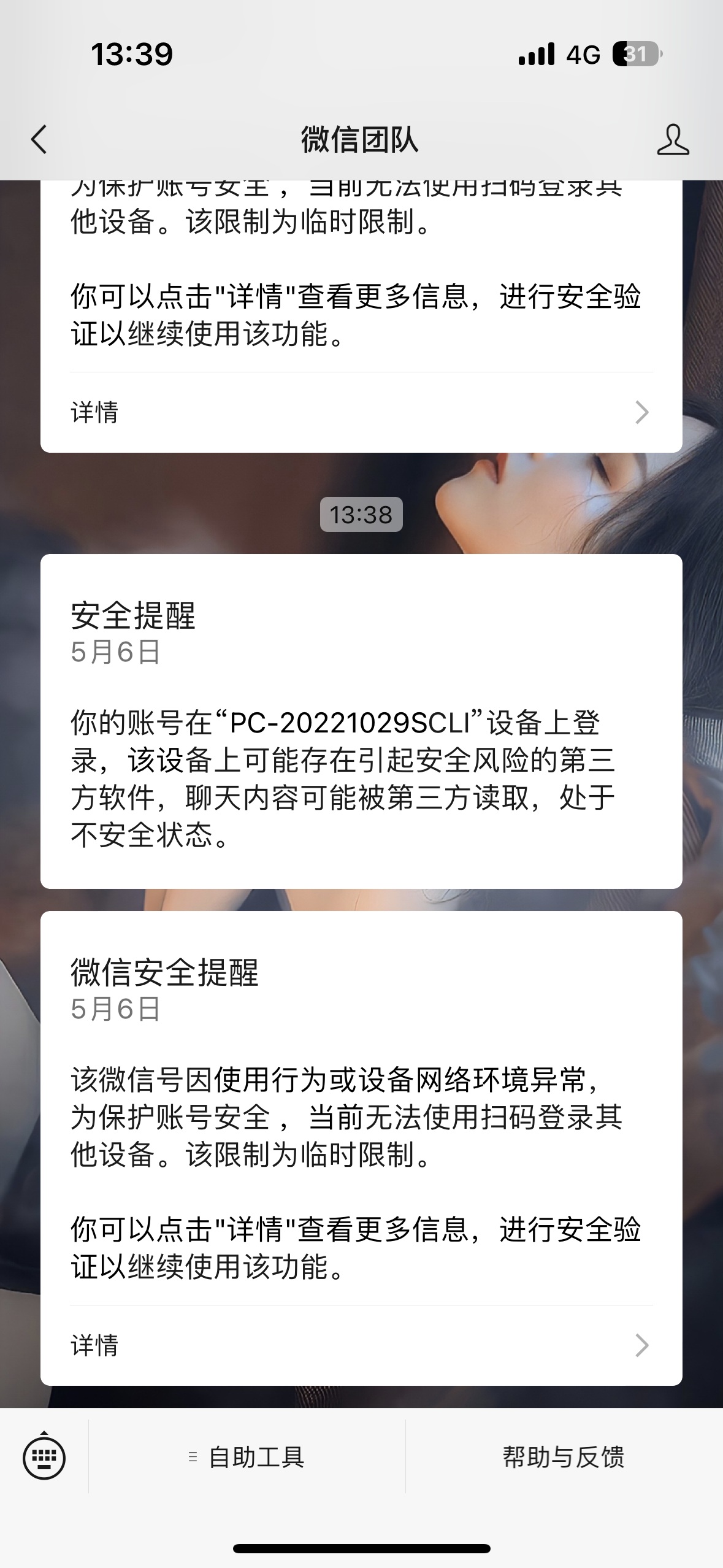 电脑版微信登陆,每次都是10几分钟提示因网络环境异常强制下线