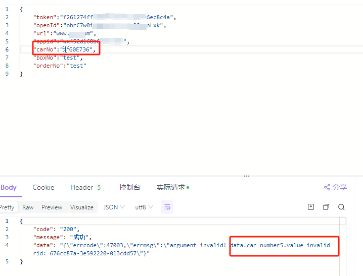 如图。test可以正常发送,换成正常车牌就不行了。。。这是为啥,向各位大佬和官方求教