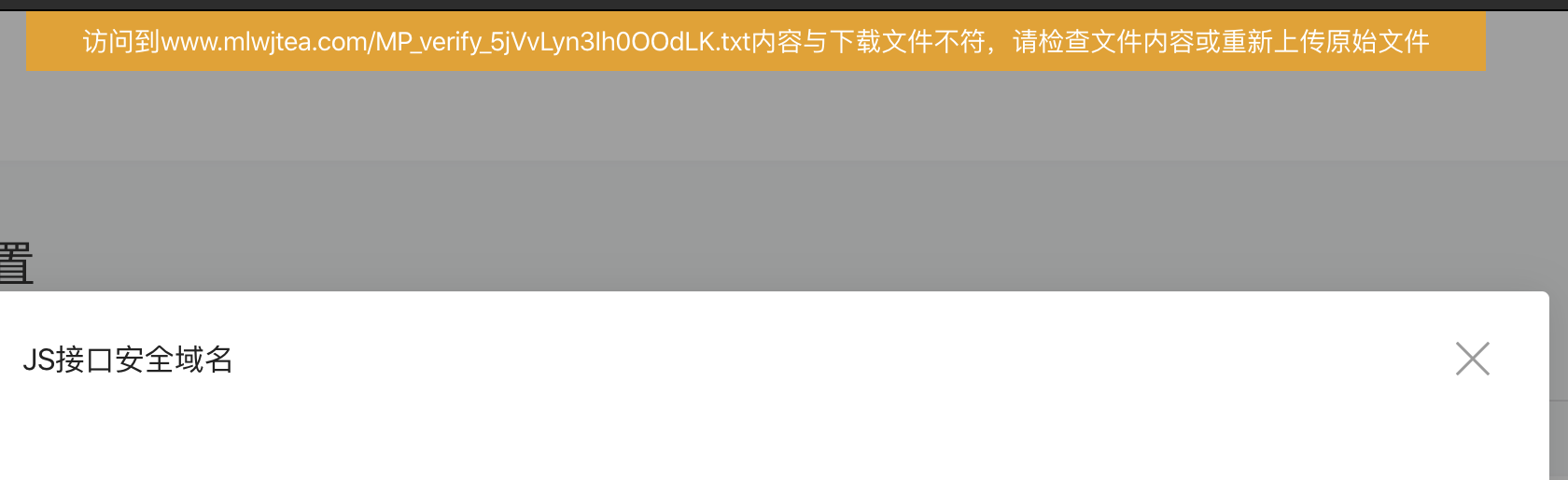 js安全域名设置页面一直提示内容与下载文件不符,请检查文件内容或重新上传原始文件, 自测服务器返回没问题,手机浏览器访问内容都是是正确的截图如下