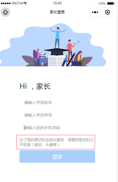 已改为以下样子,但还是审核不过,上图说要用户先了解功能,但是我们是给家长用的查询自己家孩子的在校信息的,必须登录才可以看功能,有没有人知道具体还要怎么改?