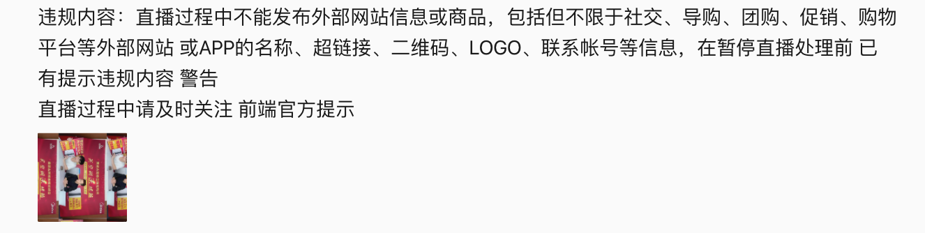 appID:wx364f64b8cd42c056,房间号:14,直播结束后,点进来发现有提醒涉嫌违规,禁播20分钟,另外我们只是介绍了2个产品,啥都没做,不知道为啥违规。在哪里可以看到原因?