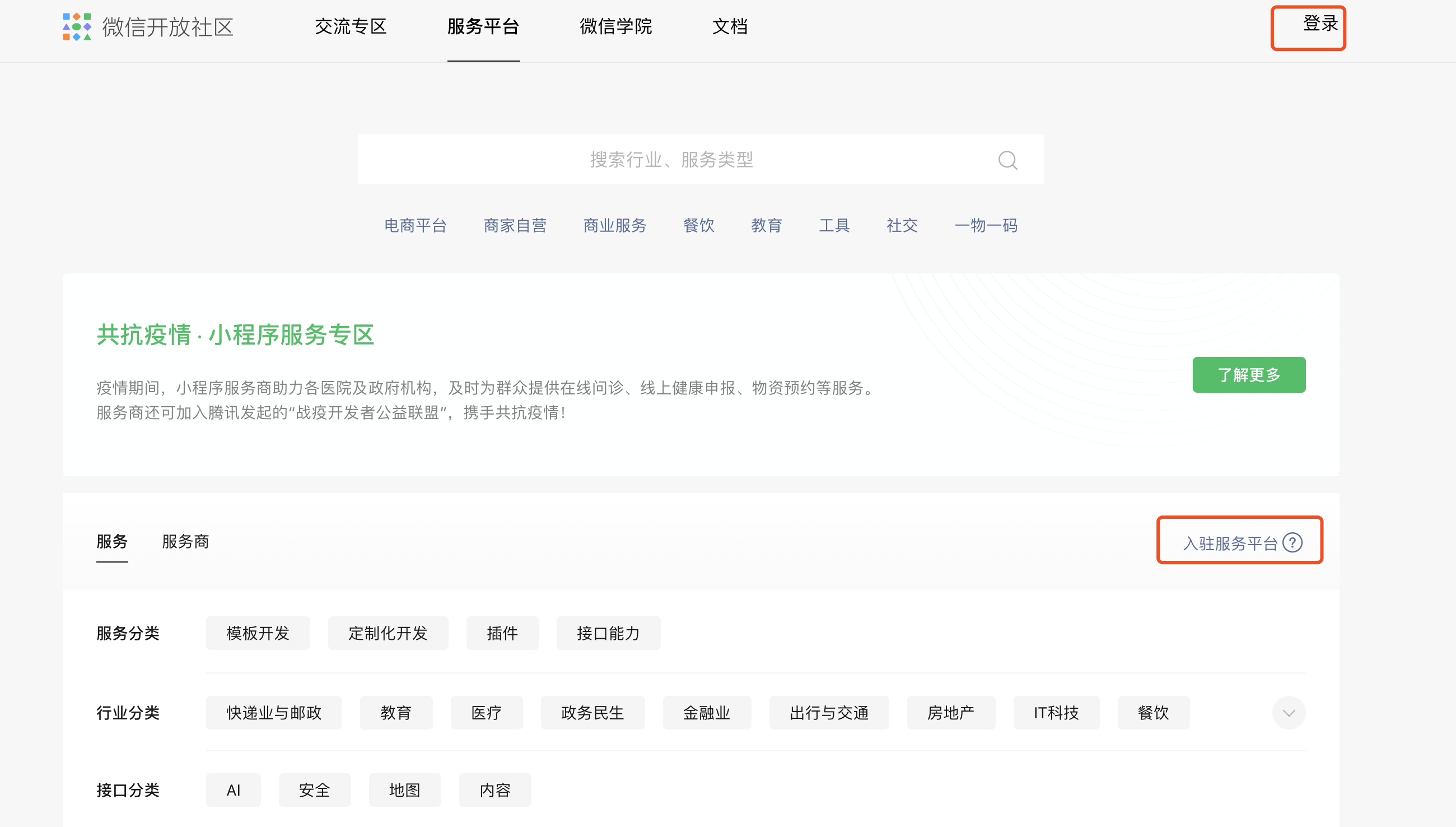 入驻服务平台的入口找不到了,请问是关闭了吗