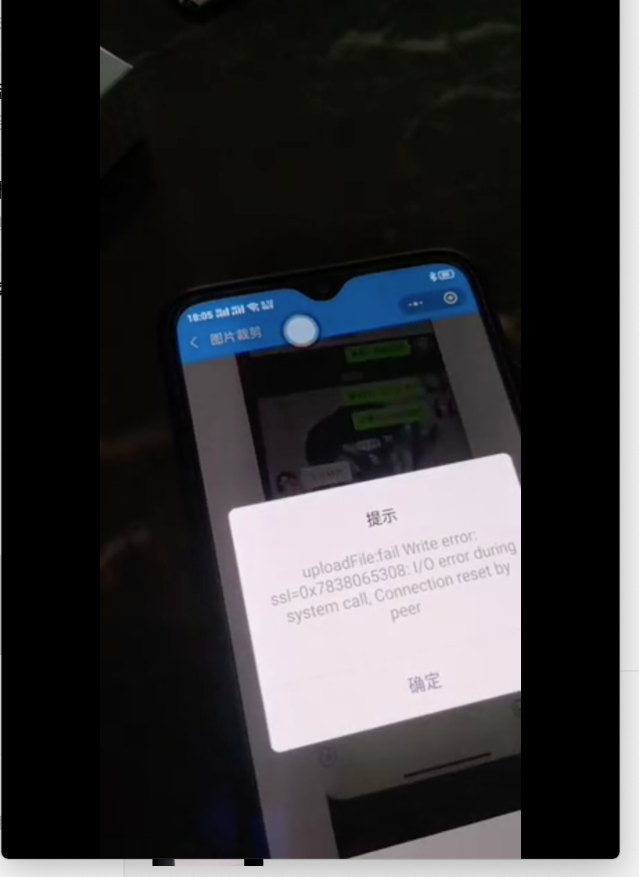 报错信息: uploadFile: fail Write error:ssl=0x7838065308:I/O error during system call, Connection reset by peer