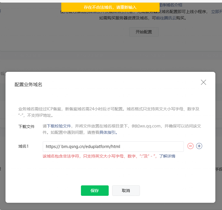 仅支持主域名,或者业务域名,不能带路径,路径需要程序去处理