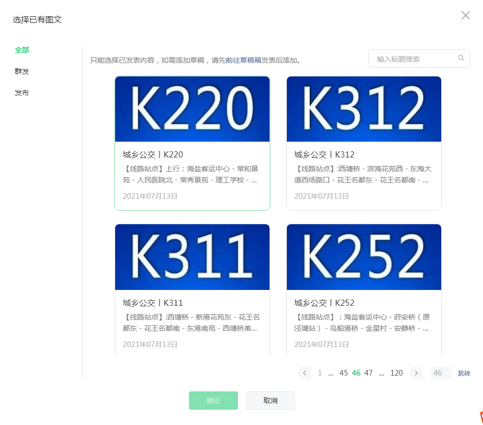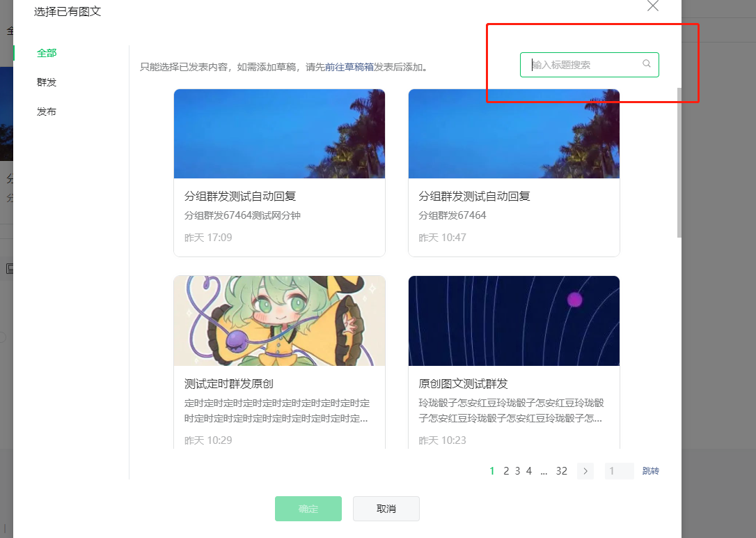 设置关键词自动回复的时候,在检索已发布内容时,输入图文标题文字搜索不到,只能一条条翻出来,这是什么问题呢?