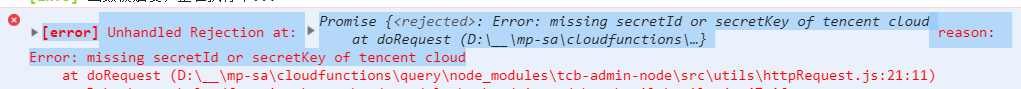 at doRequest (D:\__\mp-sa\cloudfunctions\…} reason: Error: missing secretId or secretKey of tencent cloud