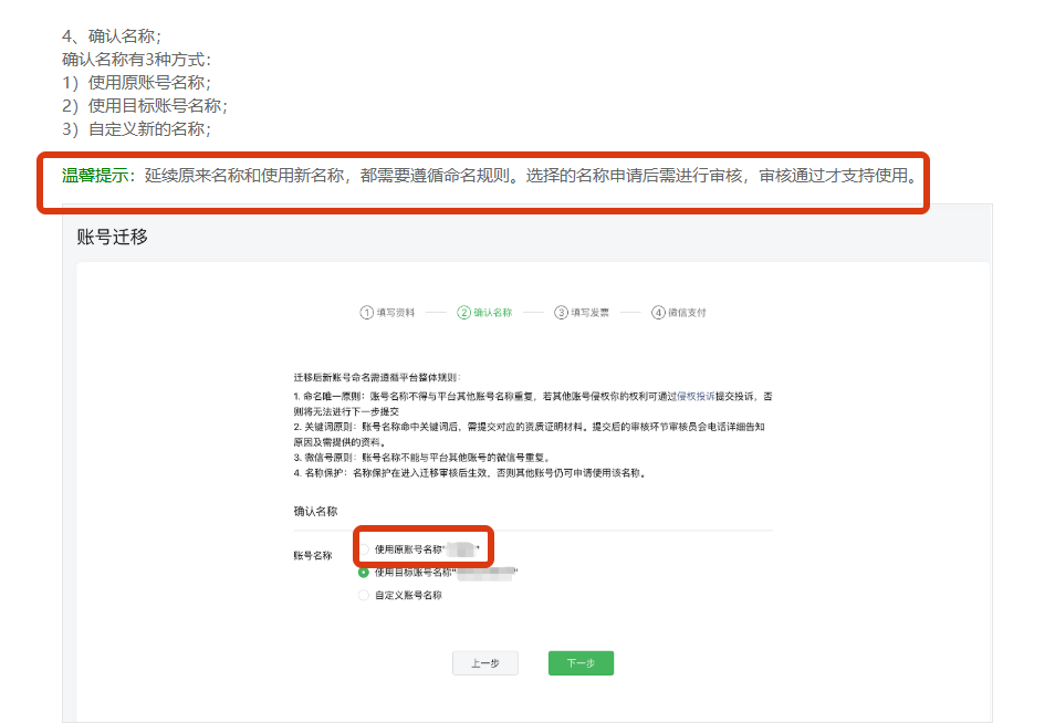 账号A迁移到账号B的步骤中就可以选择【使用原账号】A的名称啊。