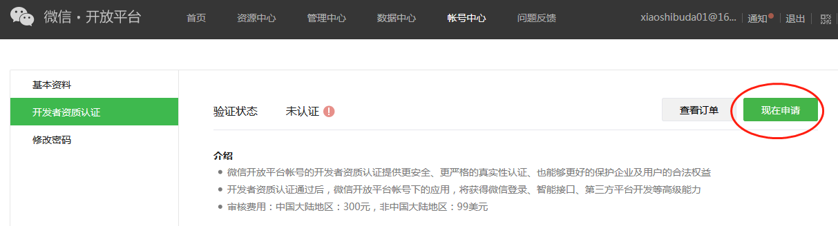 一开始已有同事申请并认证过微信公众平台账号,但当时没有注册过微信开放平台的账号,现在需要绑定小程序授权,所以重新申请了一个微信开放平台账号,但是在资质认证过程中发现又要重新申请认证一个微信公众平台账号,已经有了怎么办