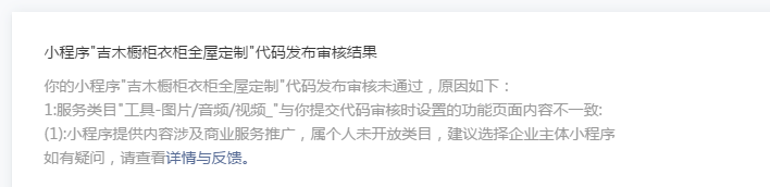 我小程序的页面是有内容和预约功能的,我看工具里面有个预约,我选这个,你们说涉及推广要企业的小程序才行,我之前问过了,你说重新帮我审核。难过(ಥ﹏ಥ)