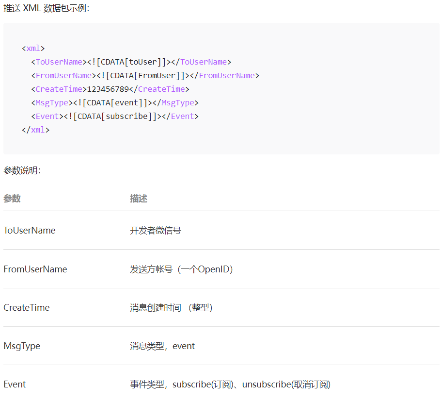 文档地址:https://developers.weixin.qq.com/doc/offiaccount/Message_Management/Receiving_event_pushes.html