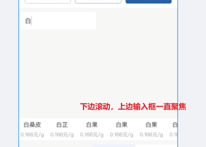 输入框输入搜索条件,下方动态显示搜索结果,此时用户可对搜索结果进行选择/标记/收藏等轻操作,此时输入框焦点持续焦点,即不触发 blur 事件,因此不收起输入法键盘。