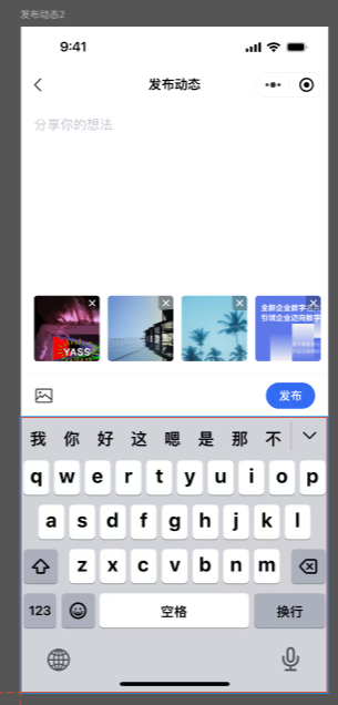 类似这种 如何实现呢 这个是悬浮在键盘之上的 1.点击发布按钮 但是内容未输入 需要提示请输入内容,这时候不需要隐藏键盘 2. 就更是的 可以操作图片的删除上传等操作 如何才能不失去焦点呢