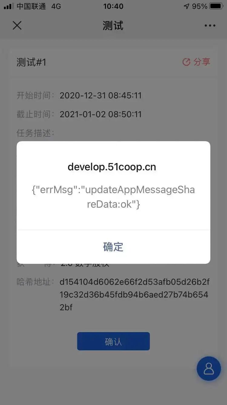 dbug模式下显示config:ok,点击页面自定义分享按钮弹框显示updateAppMessageShareData:ok,但是没有调起微信好友列表并分享给好友,安卓和ios手机测试都一样的问题,请问是什么原因?SKD:https://res.wx.qq.com/open/js/jweixin-1.6.0.js