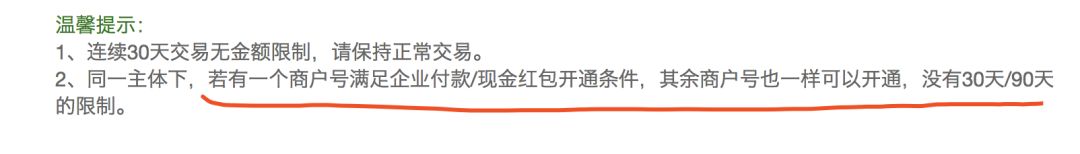不是说好有一个商户满足就可以了么?我们之前的商户都可以的。我们的商户早就满足这个条件了,之前的商户号都是带企业支付的!之前的商户号都是带企业支付的!