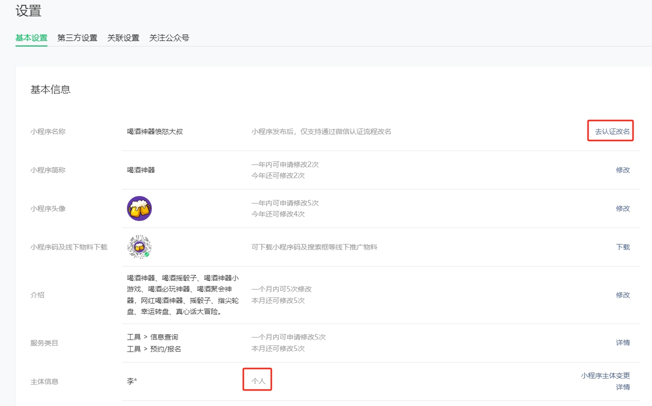 腾讯现在吃香太难看。各位请注意:小程序第二年重新认证的时候,有个大坑,默认带出的名称是和主体关联的公众号名称,是公众号的名称,请仔细阅读(很多人都以为是公众号的名称,便自认为和公众号是关联的,所以没有去调整名称),然后就入坑了。等认证完成,你的小程序名称变成了公众号名称,等你再去想改名字的时候,恭喜你,请重新认证!!!腾讯的程序员都是弱智吗?还是故意为之,我就算要在认证的时候去修改小程序名称,也是在原来的名称的基础上修改,不修改的话直接下一步就完事了,你们非得这么设计!就为了让广大用户多认证几次??
