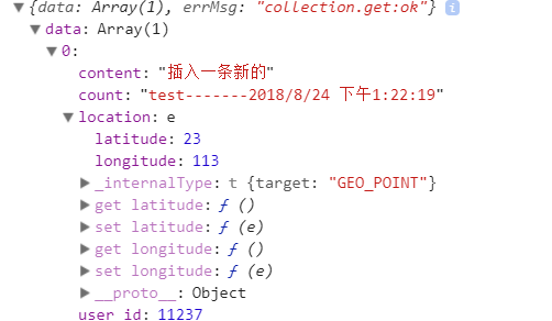 上一张图 这是通过小程序端成功存入的一条数据,明显维度超90了 竟然能存进去,经度超90反而存不进去