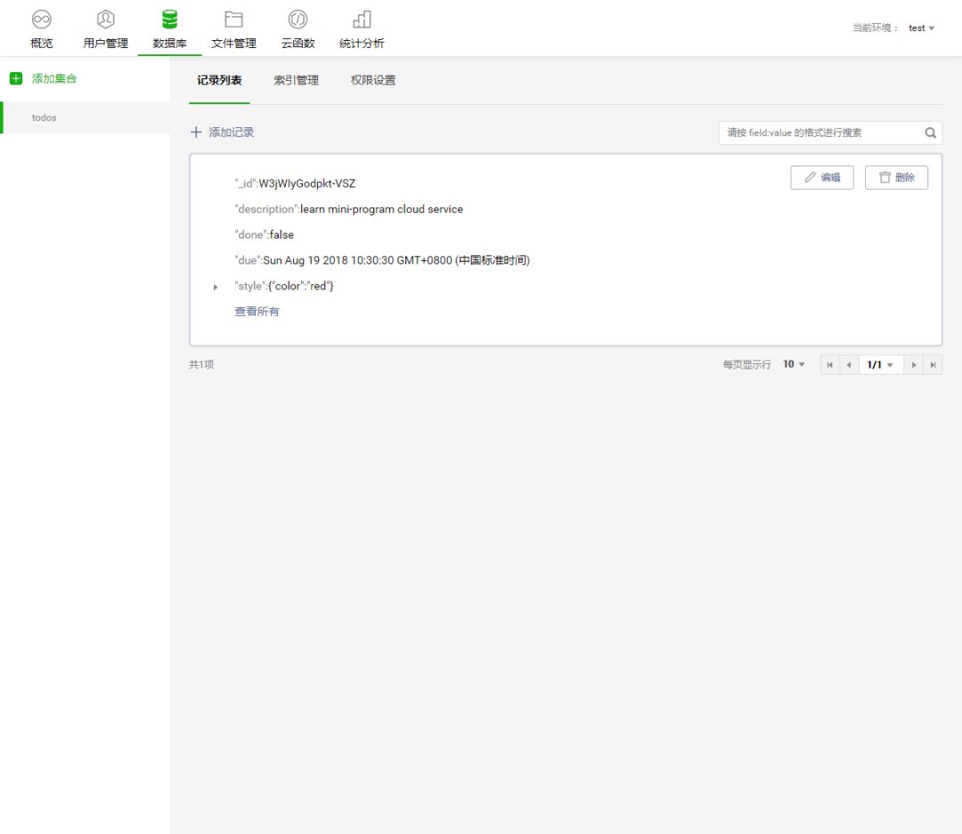 按照文档提示的查找指定环境test,结果还是找的project的,目前在project里也建了一个todos集合解决了