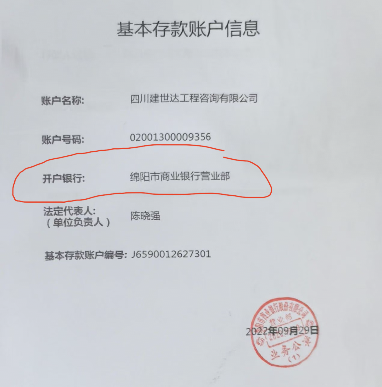开户支行选择:绵阳市商业银行股份有限公司营业部