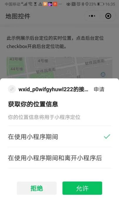 用户经常会使用默认选项“在使用小程序期间”,点击允许,这样就需要再去小程序设置中操作一次。