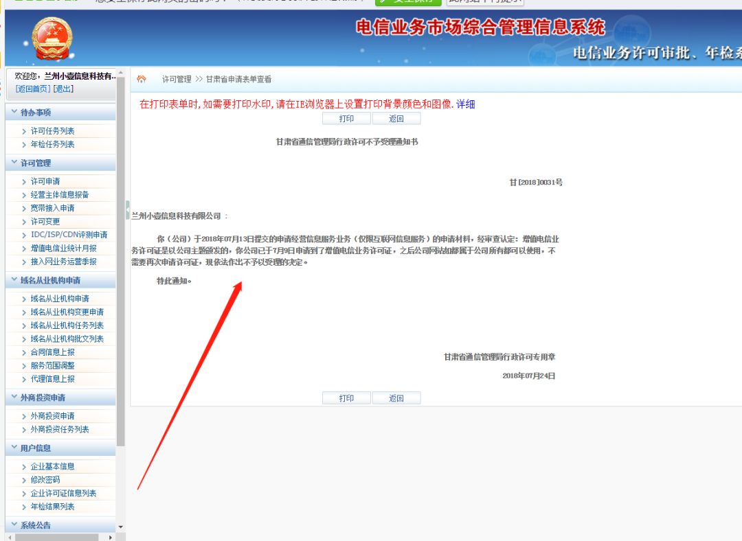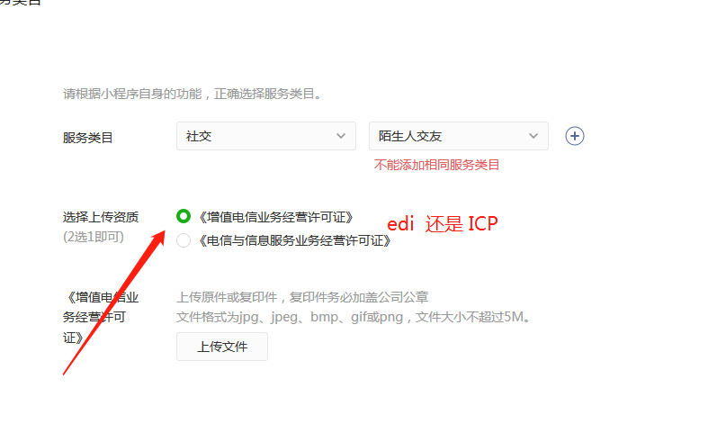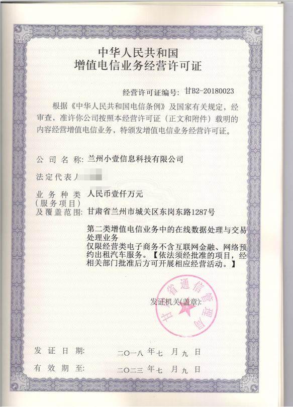 之前要求办理增值电信业务许可证,电话咨询也没有具体解释,花了一年时间终于办理下来了,结果说增值电信业务经营许可证EDI不行,需要ICP,关键选择页面也没有明确说明(如图),好吧,我再去办理,但是甘肃省通信管理局书面告知我,由于业务改变,现不需要重复办理,这个证以公司主体办理,不需要重复办理。(附:甘肃省通信管理局电话:0931-4501254)现在我的情况就是办理办理不了,小程序上线上线不了。附新办增值电信业务经营许可证 图