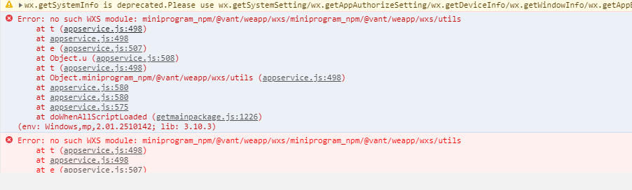 Error: no such WXS module: miniprogram_npm/@vant/weapp/wxs/p_miniprogram_npm/@vant/weapp/wxs/bem.wxs\n\t/preload/page-frame.html:6:72\nload@https://servicewechat.com/preload/page-frame.html:6:37
