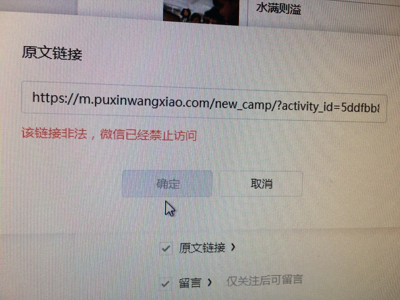 尊敬的大咖:您好!公众号MHYD1948,编辑图文消息时,“原文链接”无法添加APP链接,总显示“该链接非法,微信已经禁止访问”,但可以正常链接其他类型的文案。敬请指导解决。衷心感谢!