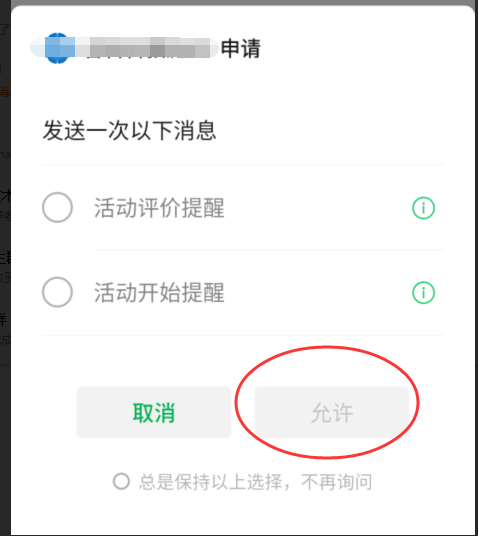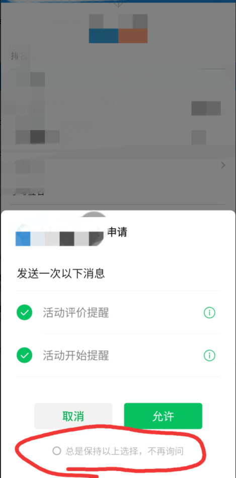 1、选择了“总是保持以上选择,不再询问”后,可在设置页-订阅消息更改允许或取消