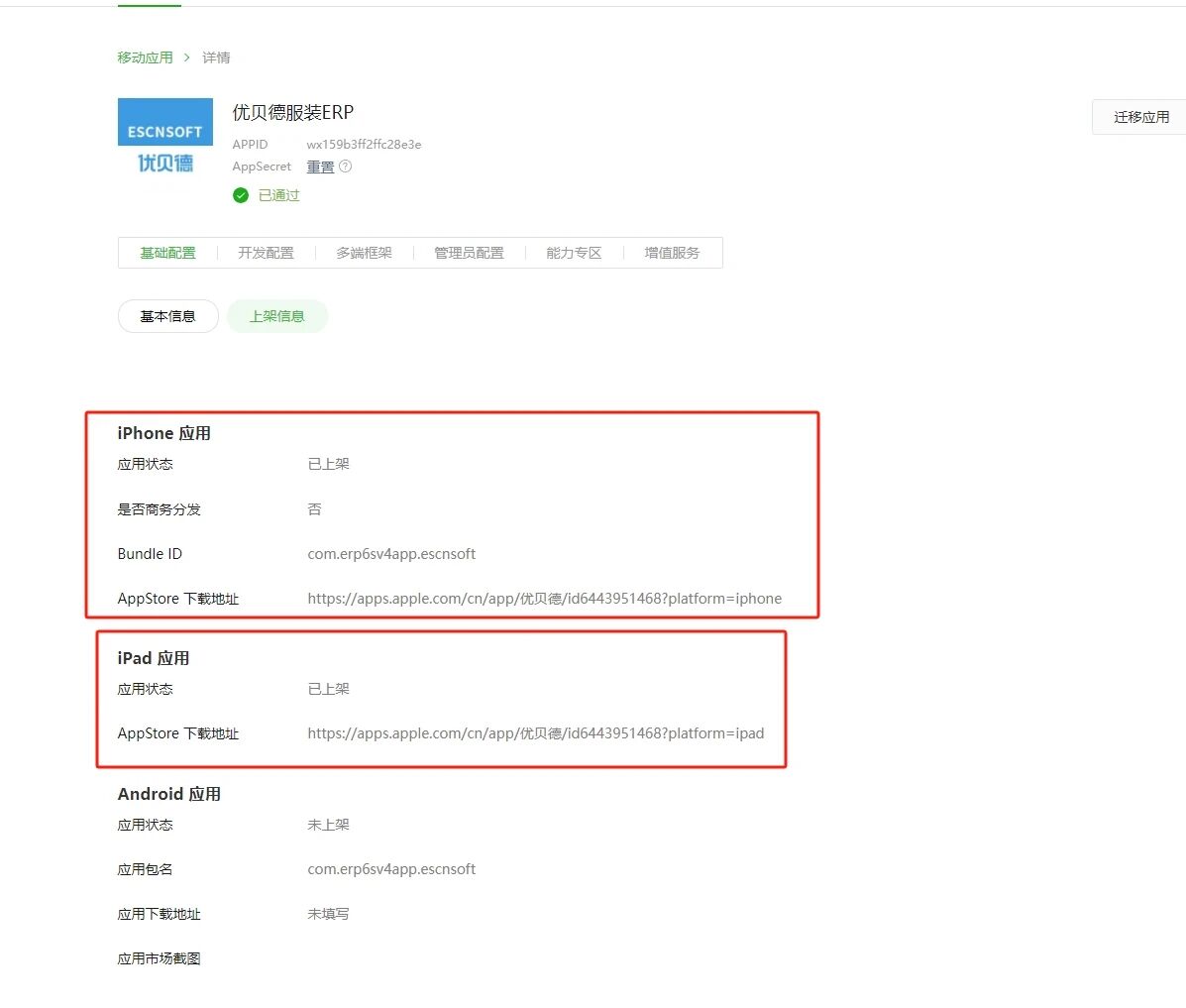你好,已上架iphone和ipad的应用是优贝德服装ERP,优贝德APP是另外一个应用为,未上架应用。