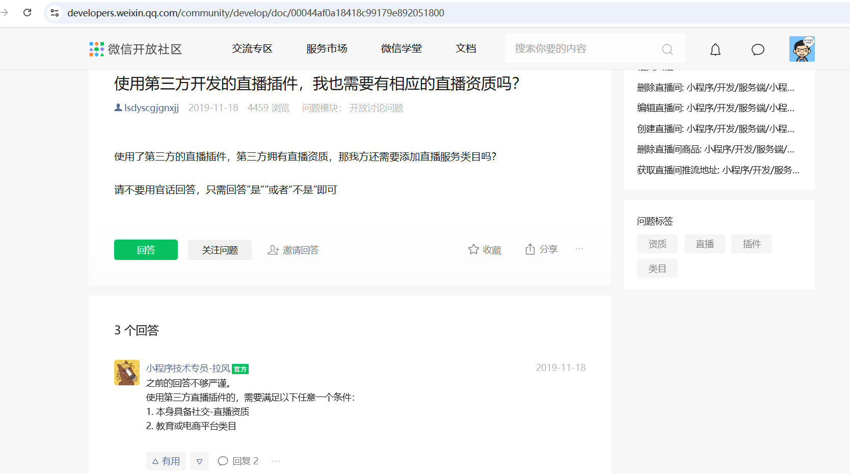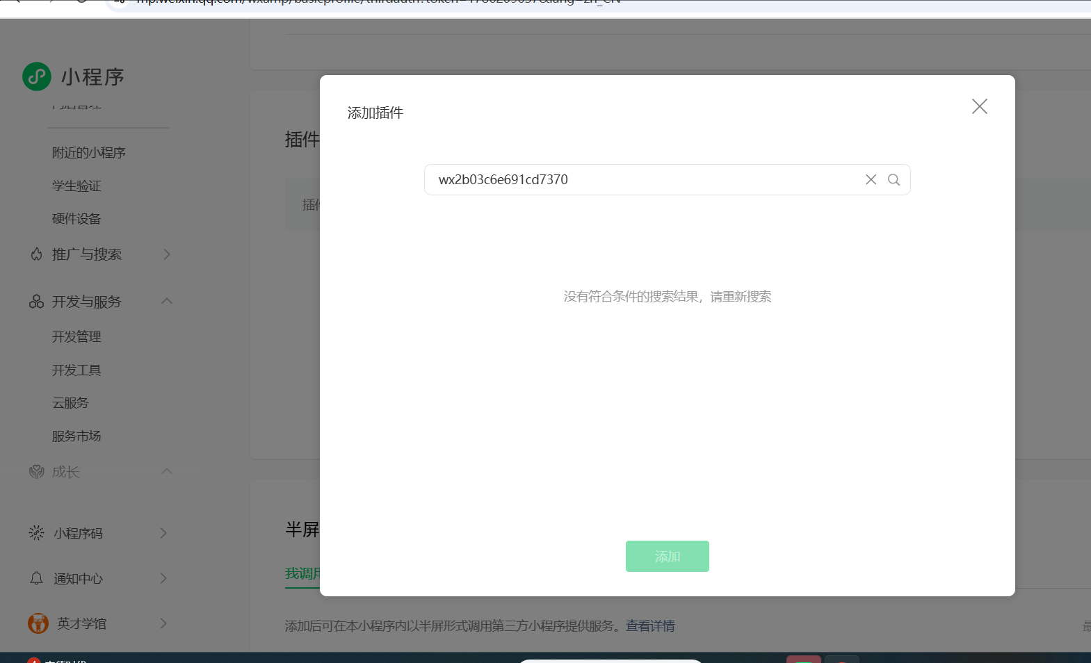 我们小程序类目是教育类的(有完整资质),想开通小程序直播插件,添加输入了这个appid:wx2b03c6e691cd7370,为啥添加不上?提示没有符合条件的搜索结果。可是在开放社区里面,你们的人员也回复说教育类的也可以。请问怎么处理?是否可以让我们可以添加这个插件。