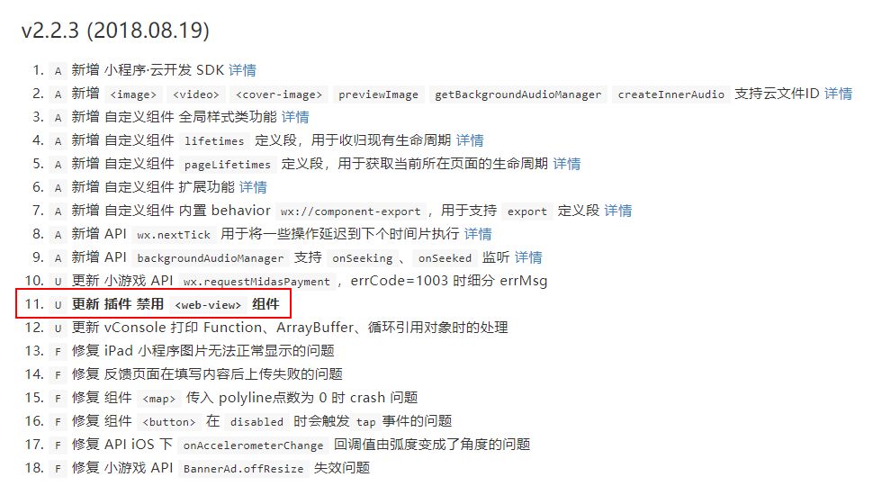 项目压力赶着上线,但是这几天发现,小程序基础库 2.2.3 版本开始,禁止插件使用 webview 能力,之前在使用的 2.2.2 版本使用正常。